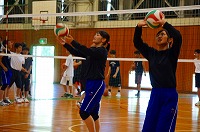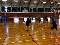 バレーボール部の体験入部では、中学生女子13名、男子2名が参加しました。