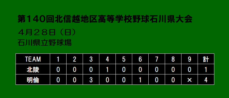 石川県立野球場 金沢商業高校 との対戦に決まりました。