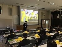 続いて担当する役割ごとに説明を聞きます。本校は昨年に引き続き、「走路ボランティア」と「給水ボランティア」に分かれて活動を行います。