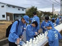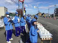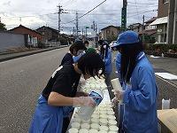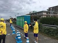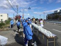 交通規制後は急いでスポーツドリンク・水の提供準備です。本校は第8給水所(スタートから24.8km地点)を担当しましたが、今年は季節外れの暑さの中でのレースだったこともあり、勢いよく水がなくなっていきました。