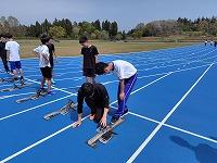 4/29(月祝)には金沢地区の記録会が予定されており、エントリーしている種目の練習をたっぷりと行うことができました。未経験者の1年生には、2・3年生がスタート練習を丁寧に指導してくれています。