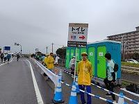 最後に「トイレ誘導員」と「給水ボランティア」です。トイレ誘導員は56区で活動し、案内看板の掲示や整理誘導などを行いました。給水ボランティアは第8給水所の後半2島を担当し、ランナーが取りやすい位置を考えながら給水を行いました。また紙コップなどの回収・片づけやトラメガを使っての案内も大切な仕事です。