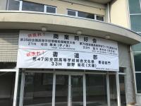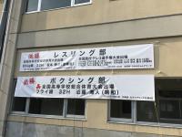 全国大会に出場する部活動の選手たちを応援すべく、現在、校舎の壁面に大きな幕が掲示されています。