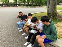 刈り取った草を集めます 皆さん積極的に活動 レスリング部が集めた