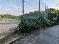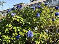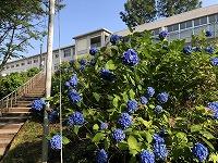 登校坂(W坂)や生徒用階段の脇にはアジサイが綺麗に咲いています。