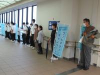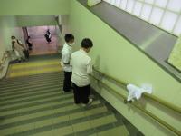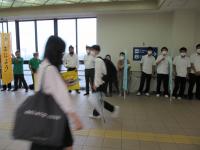 本校も朝から大雨の1日(木)、野球部員1~3年が森本駅改札口前での利用客への挨拶や、通路階段の手すりなど手に触れる部分の消毒作業にいそしみました。近隣他高の生徒たちもそばで元気に挨拶運動をしている姿に刺激を受けたり、キャンペーン参加の城北ライオンズクラブの皆さん、金沢市校下婦人会連絡協議会より派遣の皆さん、そして本校保護者の方々と共に、地域を明るくする活動に参画する意識を培う良い機会となりました。