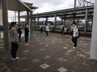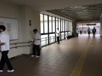 いしかわ特別支援学校や金沢市校下婦人会の方々と協力・分担しながら、森本駅構内の消毒作業および挨拶運動を行いました。