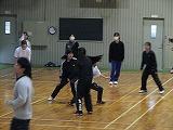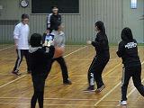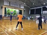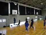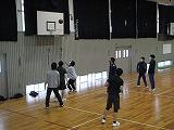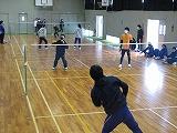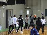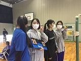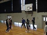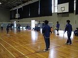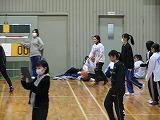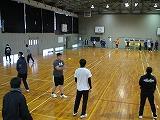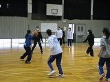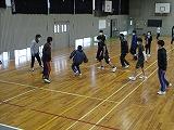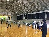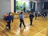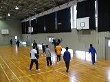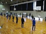 掛け声で怪我をしないように柔軟体操を行い、体育館を5周しました。