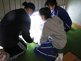▲北陵ならではの珍しい部活動に興味深々! ▲先輩が優しく丁寧に質問に答えます ▲高校生、いつもより練習に気合が入っている!?