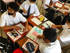 前時の復習→本時の目標確認→グループワークの内容説明→ブレインストーミング→KJ法→発表→まとめ→振り返りという流れで授業を行っていました。