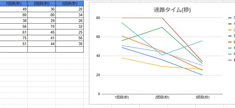 3回のタイムを記録し、結果はスプレッドシートに入力。