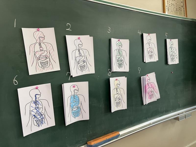人体図を使い、グループごとに「体内」と思う場所に色を塗っていきました。