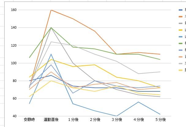 その直後から1分ごとに脈拍を測定しました。