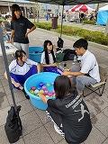 当日の会場準備、くじ引きの景品渡し係、うちわのワークショップなどのお手伝いをさせていただきながら、ヨーヨー釣りの出店も行いました!