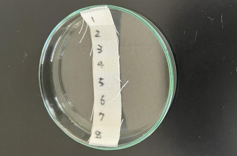 「繊維識別試薬」を用いて布を染色し、各番号の部分がどんな色に発色するかを観察します。