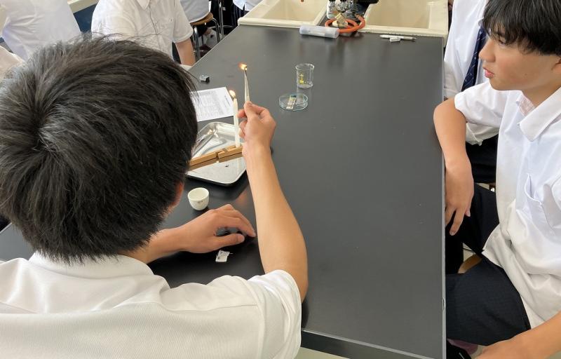 地学基礎の授業で、ポートフォリオに記入された「他の大気を使った実験を知りたい。」という生徒の素朴な思いに応える実験をしました。