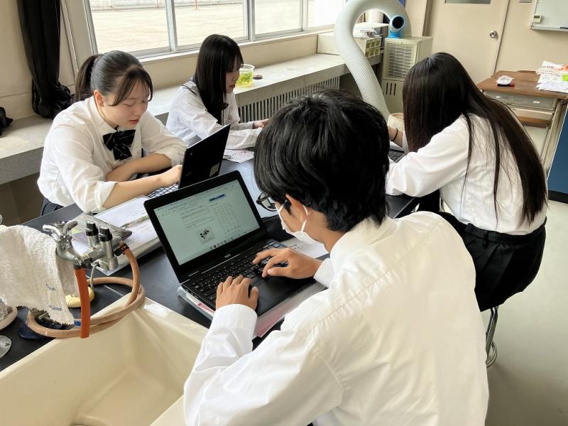 生物基礎の授業において、生徒たちが自らの学びを深めるための探究活動に取り組んでいます。