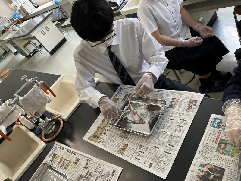 実習中には、「こんなんなっとるんやー!」「すごっ!」といった驚きの声があがり、生徒たちは興味津々の様子で取り組んでいました。
