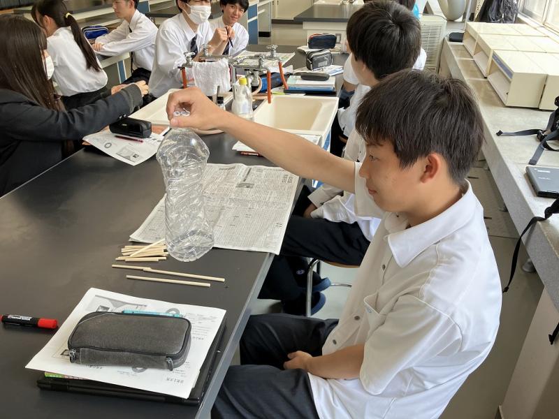 そこで、生徒たちは身近な道具を使った3つの実験を通して、見えないけれど確かに存在する「空気の重さ」や「圧力」を実感しました。
