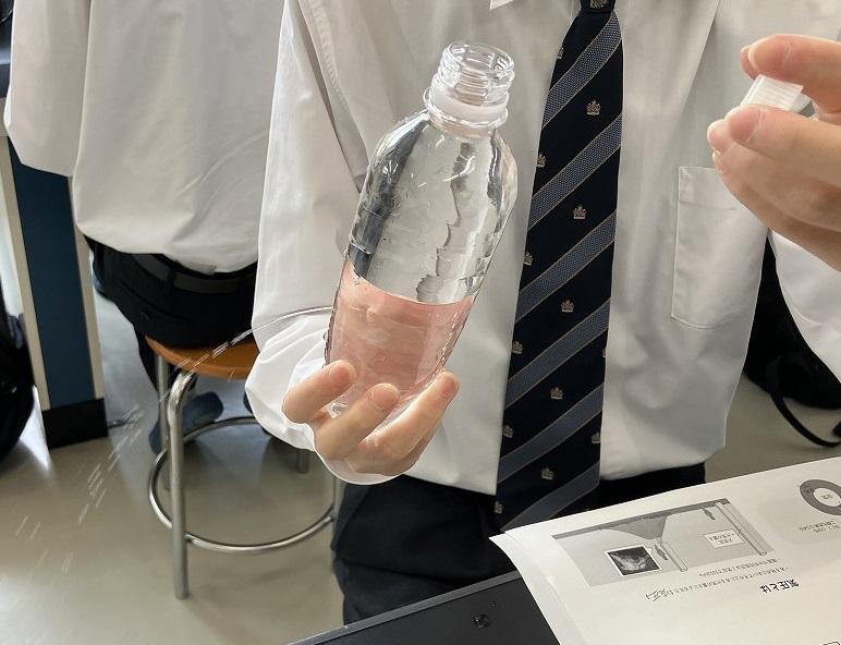 ペットボトルの中でも、気圧の変化で空気が冷やされ、同じ現象が起こりました。