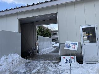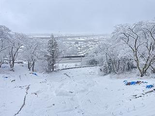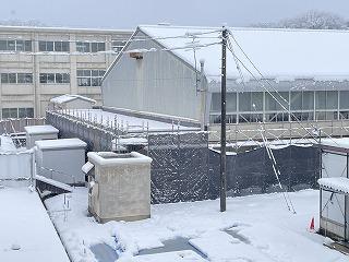 銀世界の中、北陸新幹線を一望できます 第二体育館は外壁を修理しています