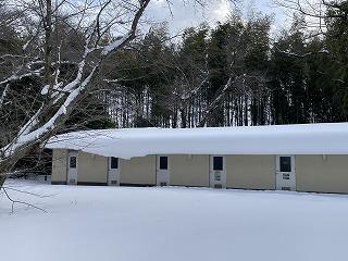 部活長屋は雪庇(せっぴ)状態です 現在通学路になっている第二体育館への