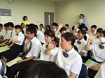 図を使ったり、具体的なエピソードを出したりと伝え方を工夫して説明している生徒もいて活発な授業でした。