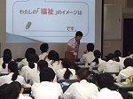 10月6日(木)に行われる福祉体験のための事前学習を行いました。福祉について、人との交流の大切さ等を学びました。