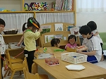 その後メンバーの2人は、自分たちが話し合った課題以外の班のところにでむいて答えを聞きます。残った2人が説明をします。