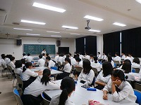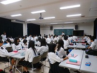 生徒が司会をし、積極的に質問して知識を深めていました。