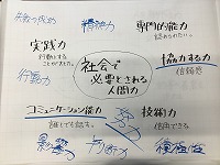 説明の後、5人グループとなり、各自が考える「必要とされる人間力」やその理由、身に付け方などを話し合いました。