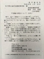 先日郵送した千羽鶴が届いたというお知らせをいただきました。