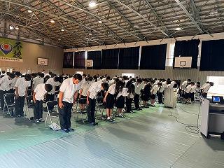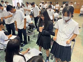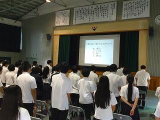 10月8日から3泊4日の日程で,沖縄方面に修学旅行に行ってきます。明日からの修学旅行のためにテスト後結団式を行いました。天候の方も当初台風が心配でしたが大丈夫そうです。このページに簡単ですが,修学旅行の様子を夜になると思いますが報告します。元気に楽しい修学旅行にしましょう。