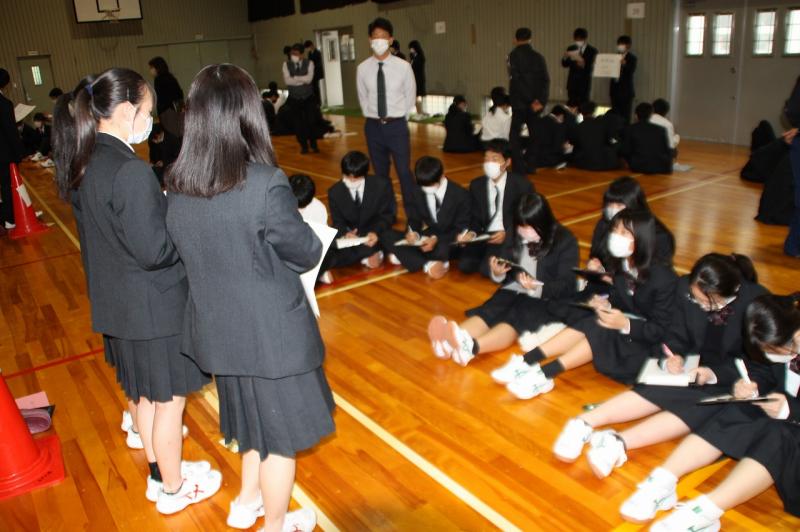 進学希望者は、「高校の部活動」や「電気の使い方」をテーマに自分の意見をまとめて明確に述べることや、