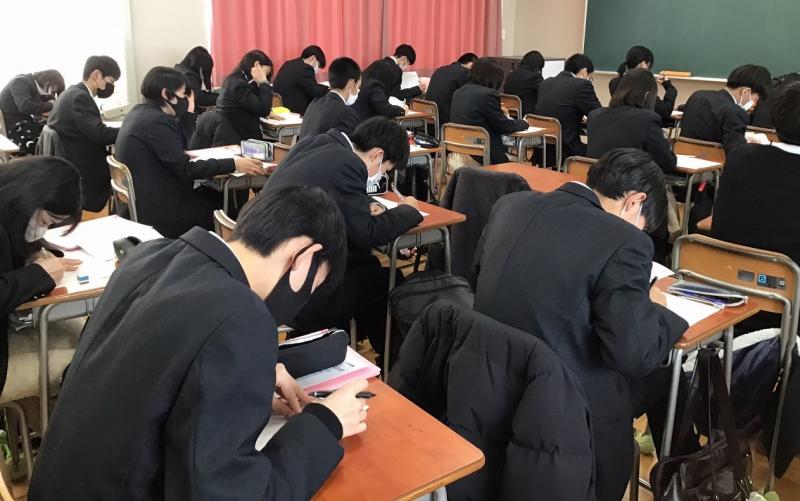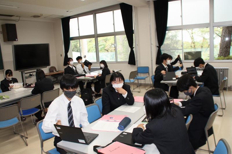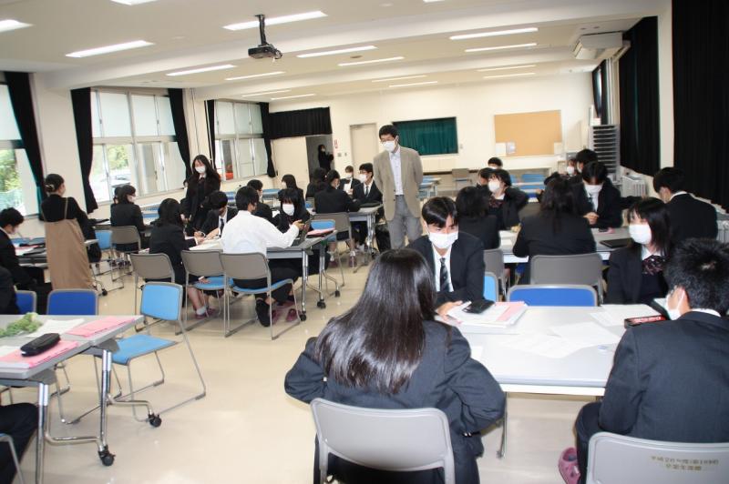 生徒は進学・就職の志望別に分かれ、事前教材を用いて活動しました。