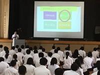 北陸大学薬学部教授 宇佐見則行先生をお招きし、薬物乱用の現状や使用のきっかけ、薬物の怖さや誘いの断り方などを学びました。
