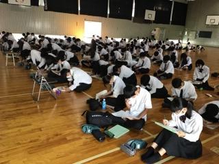進学希望グループは第一体育館で、第一学習社の岡田洋子氏を講師にお招きしました。