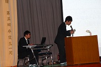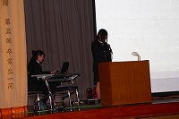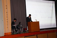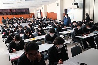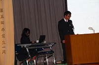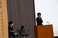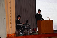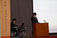 総合学科高校3年間の総まとめとして、3年次に取り組んできた「テーマ研究」の全体発表会が行われました。各教科の代表者(個人・グループ)が、画像・演奏・動画を取り入れ、工夫を凝らし、1・2年次生、他聴衆も興味深く耳を傾けていました。研究内容は、誰もが関心をもつ身近なテーマから専門的なテーマまで多岐に渡り、努力の跡がみられ見応えのあるものとなりました。