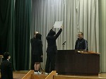 今日は、起立・礼といった基本動作、証書受領の確認と練習をおこないました。