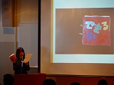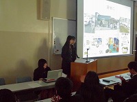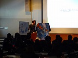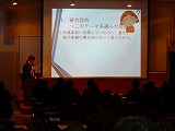 発表者は、研究内容をプレゼンソフトを利用して、わかりやすく伝える工夫をしながら話していました。