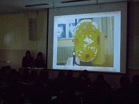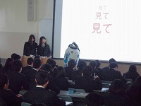 研究で作成した作品も披露され、他の生徒は関心しながら発表を聞いていました。