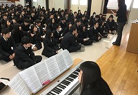 聴いている生徒は、発表の要点や感想をワークシートにまとめていました。