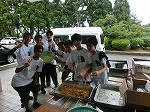 8月7日(日)朝晴27℃ 日差しの強し、今朝は本校男子生徒が朝市のお手伝い。