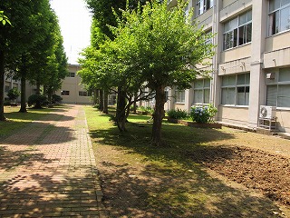 中庭で畑をつくってさつまいも植えました