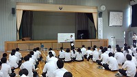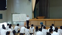 6月24日(水)本校の第一体育館にて、進路実現講習会を開催しました。講師として富山大原簿記公務員医療専門学校 広報企画課課長 島倉正信 氏を招き、面接や会社訪問に必要な心構えとマナーを学びました。「挨拶や身だしなみ・態度が合否を大きく左右することがよくわかった。気を引き締めて就職試験に臨みたい」と述べる生徒が多くいました。