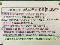 12/13(火)のテーマ研究の時間からは、代表者と他の生徒に分かれての活動が始まります。