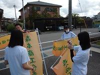 まずは森本商工会青年部ののぼりばたをみんなで一緒に設置します!
