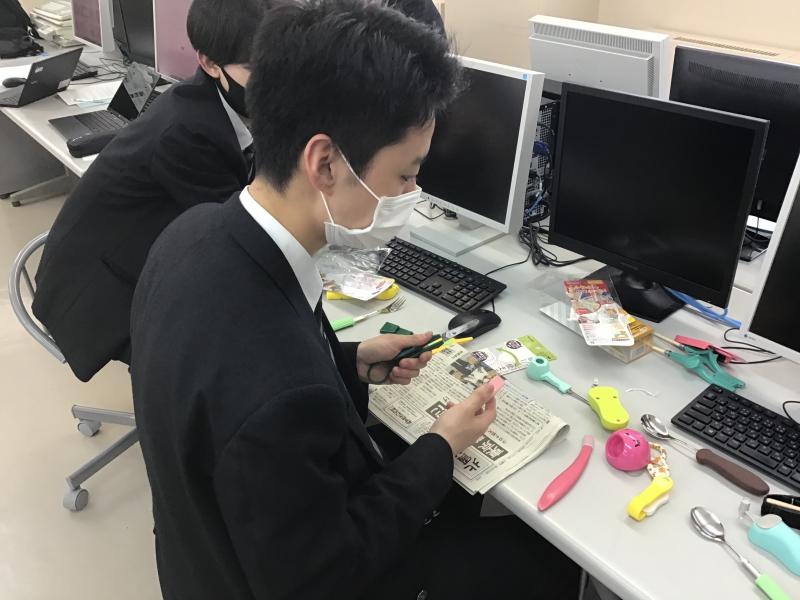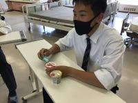 ヨーグルトの容器を開けやすくするためのプロジェクト」に向け、5眼目の時間には、がんサロンはなうめの看護師木村様より、がんについてのお話をして頂きました。3人に1人の割合で発症されると言われるがん。それぞれがんの発症部位によっても症状は異なりますが、がんそのものからくる身体症状だけではなく、薬の副作用からくる症状も多くあることを生徒達は理解しました。食欲減退や咀嚼力、嚥下力の低下等が見られる方にとってもヨーグルトは食べやすいもの。そのヨーグルトが開けづらい…という課題が少しでも解決できるように取り組みたいと改めて生徒達も感じたようです。来週は、実際にがん患者様とお会いし、生活上の課題について当事者様からお話を伺います。