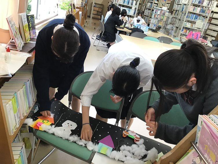 今回は、3~4人のグループに分かれて、折り紙を使った壁面装飾を作る課題に取り組んでいます。