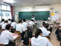 一人ずつ前に出て、賛成・反対とその理由を英語で発表しました。ほとんどは賛成意見でした。スピーチ活動をとおして、自分の意見を明確に表現することができるようになってきました。今後もALTのライアン先生の指導のもと、異なる主題でスピーチに取り組み、上達をめざしていきます。